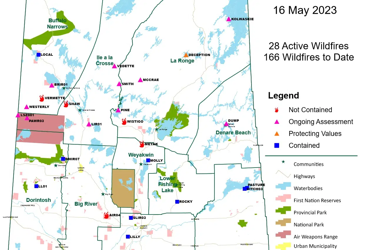 The Saskatchewan Public Safety Agency is reporting 28 wildfires were burning in northern areas of the province—but only five have yet to be contained.