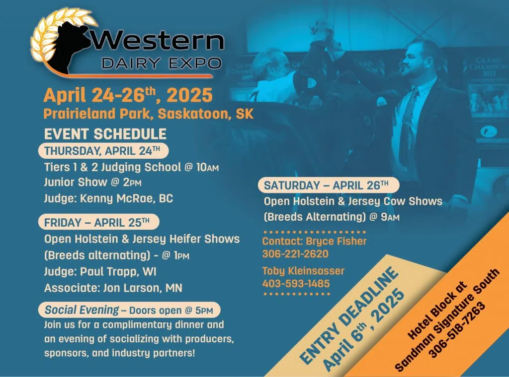 Western Dairy Expo is at Prairieland between April 24 – 26. This is dedicated to bringing together Western Canadian Dairy Farmers, and creating opportunities for the next generation of farmers.
